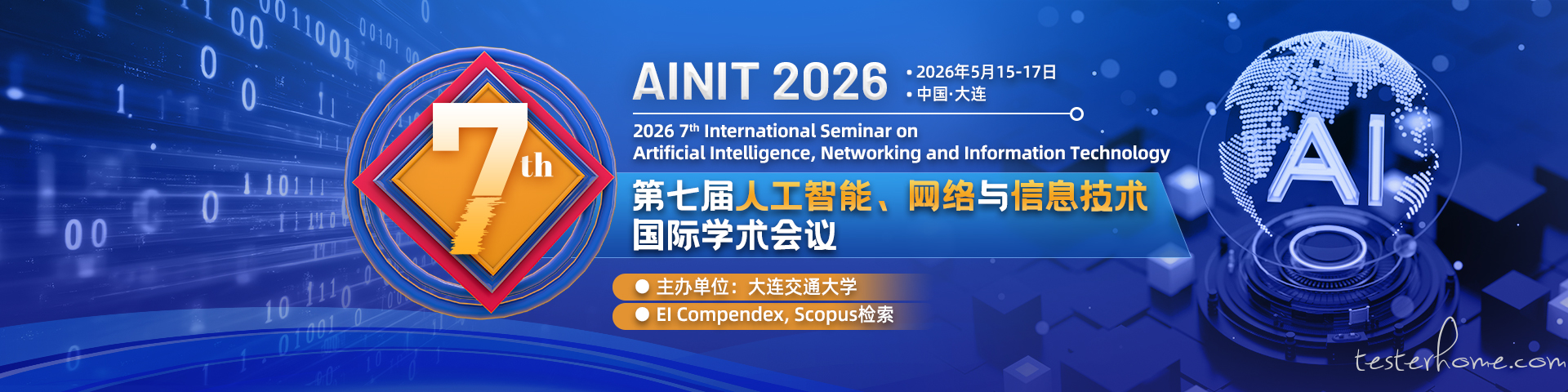 第七届人工智能、网络与信息技术国际学术会议(AINIT 2026)将于 2026 年 5 月 15-17 日在中国大连举行。本届会议将主要关注人工智能、网络与信息技术面临的新的挑战问题和研究方向,着力反映国际人工智能、网络与信息技术相关技术研究的最新进展。大会届时还将邀请国内外相关领域知名学者到会作报告,与各与会者共同分享交流各领域的前沿研究成果。
