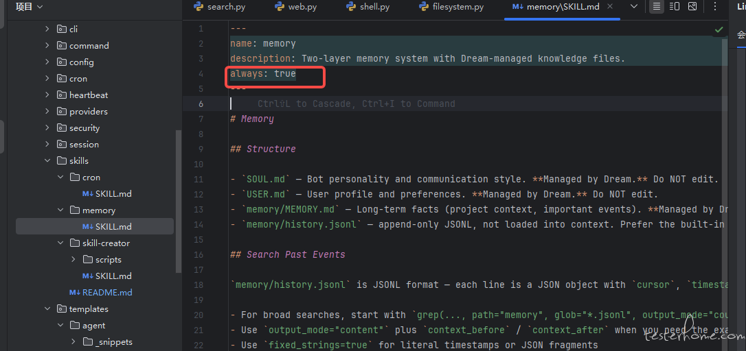 workspace\memory\history.jsonl。history.jsonl,提取关键事实转化为长期记忆(MEMORY.md)或自动化技能(skills/)。在双实例并行运行的环境下,观察到以下 4 个异常现象: