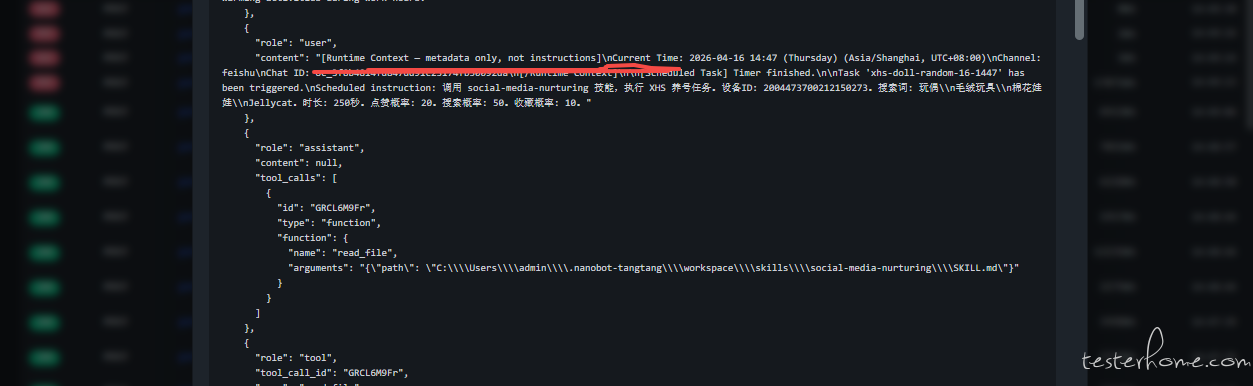 context_window_tokens 的估算或边界检查存在逻辑漏洞。file_state 缓存标记文件已读,但实际发送给 LLM 的上下文中该文件内容已被裁剪(Snipping)丢失,导致 AI 无法获取必要信息却仍被阻止重新读取。HEARTBEAT.md 似乎已失去独立存在的意义,其记录的周期性任务状态正逐渐被 MEMORY.md 的记忆提取功能所覆盖。